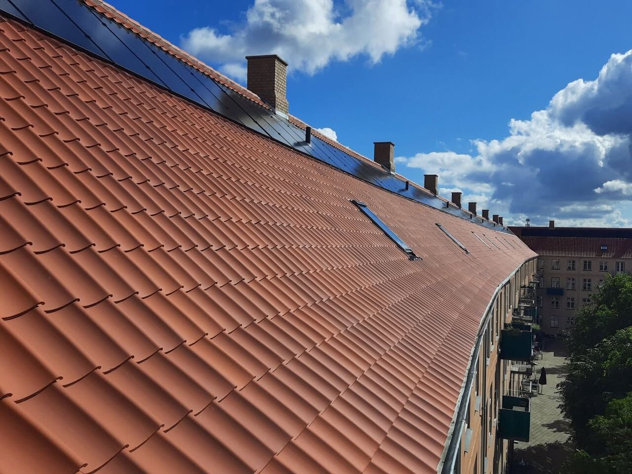 I forbindelse med en omfattende renovering og udskiftning af taget på ejendommen A/B Vanløsegård, har Nordens Installation blandt andet stået for etableringen af et moderne solcelleanlæg, som er blevet integreret smukt i det nye teglstenstag.